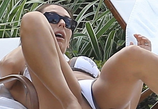 Την Karayiannis με το άσπρο-γκρι μπικίνι εντόπισε ο φωτογραφικός φακός σε πισίνα στο Miami.