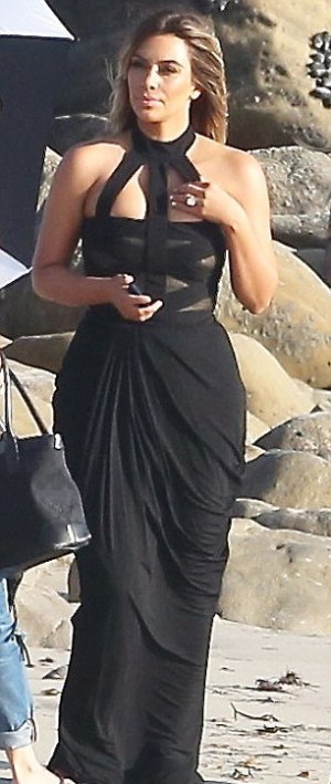Η 33χρονη σταρ εμφανίστηκε με μαύρο φόρεμα για να πάρει μέρος σε οικογενειακή φωτογράφιση στο Μαλιμπού.