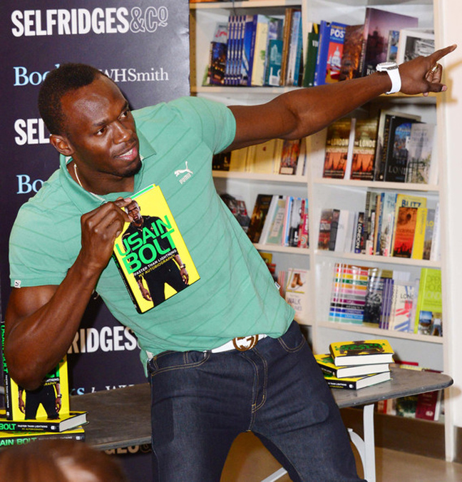 Το λένε «Bolting» και το ξέρουμε όλοι: ο ιδιαίτερος πανηγυρισμός του δρομέα που κάνει τα χέρια του σαν να κρατά τόξο στοχεύοντας με το φανταστικό του βέλος τους ουρανούς! Ο Bolt πρωτοεφάρμοσε την κίνηση στους Ολυμπιακούς του Πεκίνου το 2008, όταν έθεσε νέο παγκόσμιο ρεκόρ στα 100 μέτρα, και έμοιαζε εντελώς αυθόρμητος ο πανηγυρισμός, αλίμονο όμως, δεν ήταν έτσι: είχε προβάρει την κίνηση με φίλο χορευτή στην Τζαμάικα! «Είχα κάνει συμφωνία ότι αν κέρδιζα τα 100 μέτρα, θα έκανα μια τρελή χορευτική κίνηση. Το ονομάσαμε “Di World”», γράφει ο σπρίντερ, ο οποίος εφαρμόζει έκτοτε τον ιδιαίτερο πανηγυρισμό σε κάθε του νίκη…