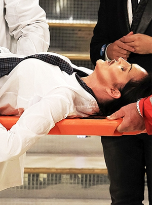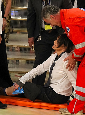 Η Anna Oxa την ώρα που διαγωνιζόταν χορεύοντας με τον επαγγελματία χορευτή Samuel Peron, της γύρισε το γόνατο και χρειάστηκε να μεταφερθεί με φορείο στο νοσοκομείο.