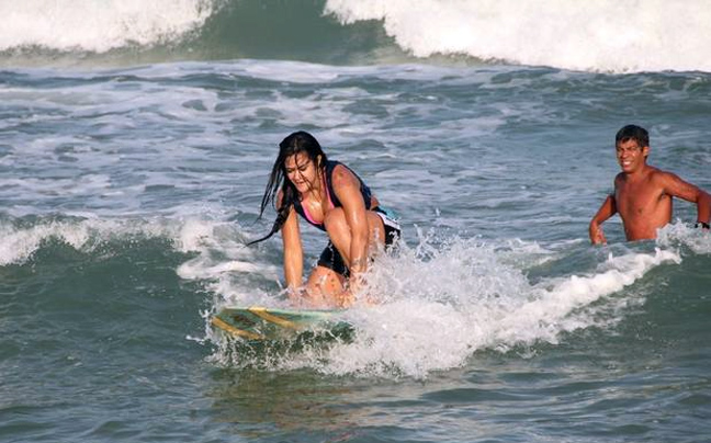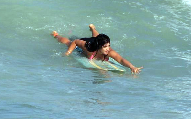 Αυτή τη φορά η Tati προσπάθησε να κάνει μαθήματα σeρφ και αφού έφαγε τις… τούμπες της, ξάπλωσε στην παραλία να μας δείξει τα πλούσια κάλλη της…