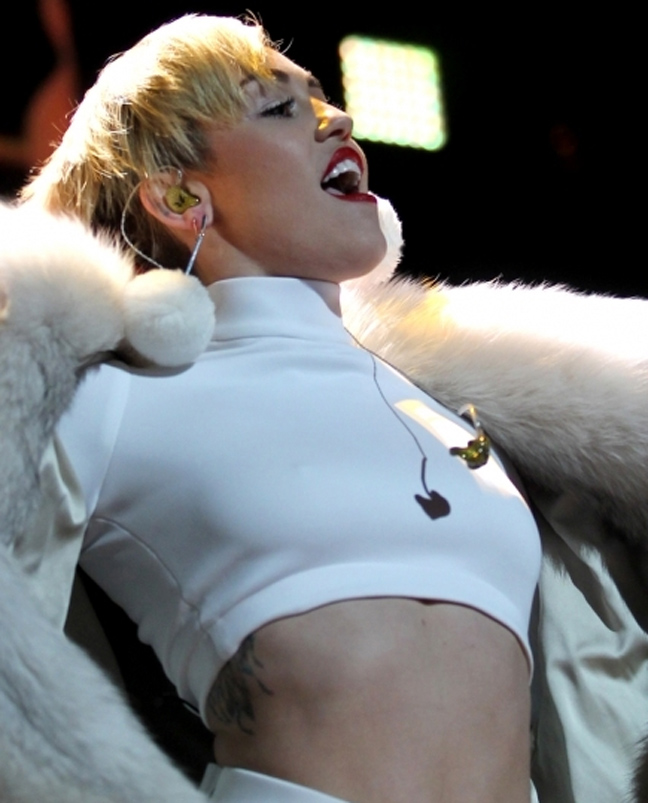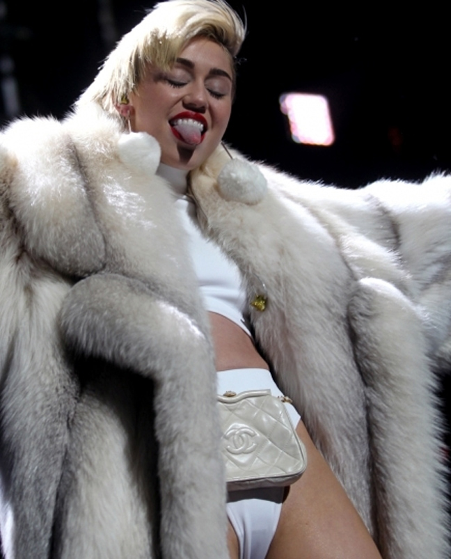 Φορώντας πράσινα κέρατα τάρανδου στο κεφάλι, σκουλαρίκια με άσπρα χνουδωτά μπαλάκια και ντυμένη- περίπου ντυμένη τέλος πάντων- στα λευκά, δεν σταμάτησε να επιδίδεται σε όλα εκείνα που έκαναν το όνομά της γνωστό σε όλο τον κόσμο: προκλητικός χορός, twerking, γλώσσα έξω, α, και τραγούδι κάπου μέσα στ’ άλλα.