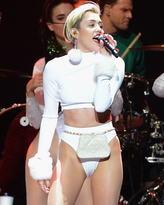 Μάλλον κανείς δεν εκπλήσσεται πια από τη νέα προκλητική εμφάνιση της Miley Cyrus, αυτή τη φορά στο Jingle Ball που έγινε προχθές στην Ουάσινγκτον.
