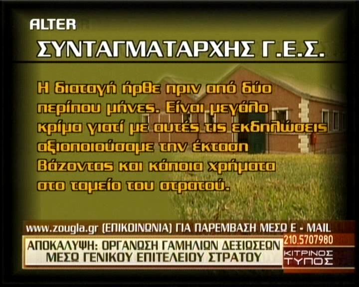 LIFESTYLE #ΓΕΣ Τέλος στους γάμους στο Άλσος Στρατού ΔΕΙΤΕ ΤΗ ΦΩΤΟ: 29·06·2010 03:28 Δυστυχώς… τέλος στους γάμους στο Άλσος Στρατού, μετά από παρέμβαση ΓΕΣ.