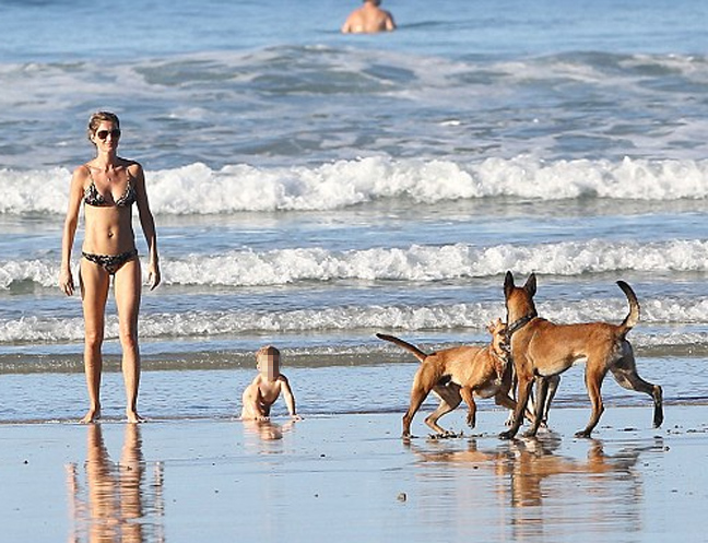 Παρέα με την Vivian, την ενός έτους κορούλα της και ένα φίλο της σέρφερ διασκέδασαν στην παραλία κάνοντας ηλιοθεραπεία και μπάνιο στη θάλασσα.