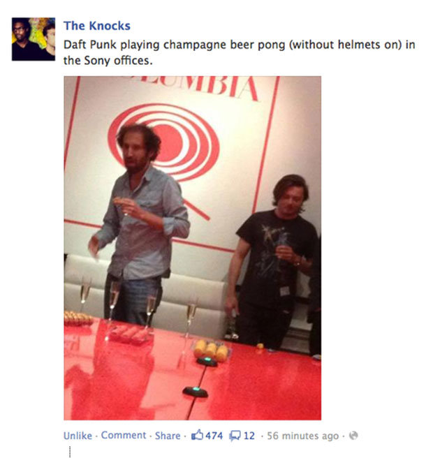 Παρόλο που πολλοί είχαν ισχυριστεί τότε ότι την φωτογραφία τράβηξαν οι «Knocks», το συγκρότημα ξεκαθάρισε στο twitter ότι απλώς βρήκε τη φωτογραφία σε κάποια ιστοσελίδα στο Διαδίκτυο. Αρκετές εικόνες με τους Daft Punk κυκλοφορούν έτσι κι αλλιώς στο Διαδίκτυο, αλλά αυτή φαίνεται να είναι μία από τις πιο πρόσφατες… πόζες τους.