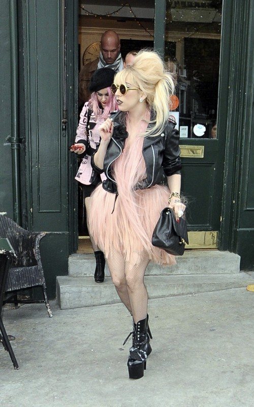 Η διάσημη αμερικανίδα τραγουδίστρια, Lady Gaga, εντοπίστηκε από παπαράτσι σε μια παμπ στο Λονδίνο, οι οποίοι περίμεναν υπομονετικά να βγει για να την απαθανατίσουν σε άλλη μια… «τρομερή» εμφάνιση με κάτι που έμοιαζε σαν ροζ τριχιά! Η ίδια μάλιστα τους έστειλε γάλα και μπισκότα για να τους γλυκάνει, όσο την περίμεναν!