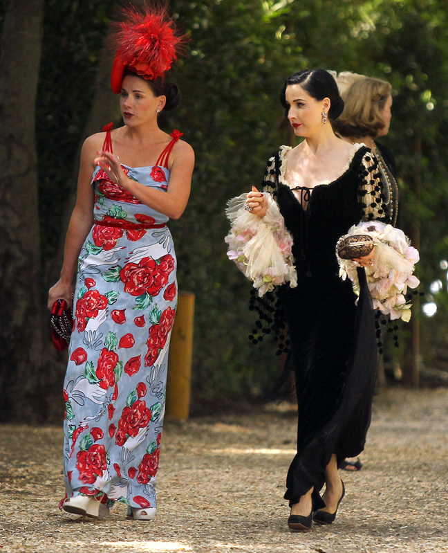 7. Dita Von Teese: η Dita είναι η δεξιά, αυτή που έχει φορέσει τις ανθοδέσμες της νύφης στα μανίκια. Δεν ξέρουμε εάν οι σταρς του burlesque βλέπουν τα πράγματα από μια διαφορετική οπτική. Αυτό που ξέρουμε είναι ότι το καπελάκι της κολλητής ταιριάζει στις ιπποδρομίες του Ascot.