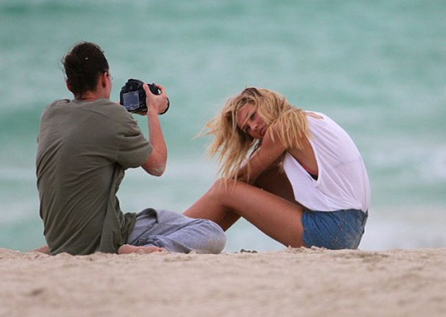 Η 25χρονη καλλονή φωτογραφήθηκε την Τρίτη στο Μαϊάμι, για το επόμενο τεύχος του περιοδικού Marie Claire και λόγω του κρύου και του αέρα που επικρατούσε φόρεσε το παλτό της αλλά και ένα λευκό ζακετάκι πάνω από το μαγιό της.