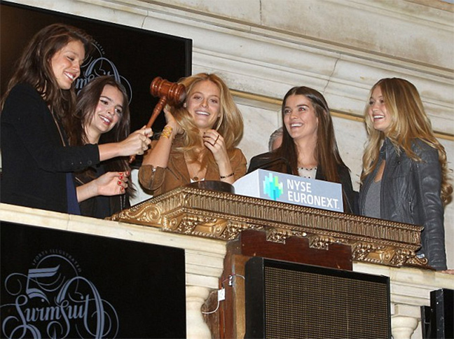 Οι καλλονές του γνωστού περιοδικού Sport’s Illustrated μας απασχολούν για δύο λόγους αυτές τις ημέρες. Ο πρώτος είναι ότι την Πέμπτη, οι Natasha Barnard, Kate Bock, Emily DiDonato, Gigi Hadid και Emily Ratajkowski βρέθηκαν στη Wall Street και συγκεκριμένα στο New York Stock Exchange για να χτυπήσουν το καμπανάκι της λήξης της συνεδρίασης.