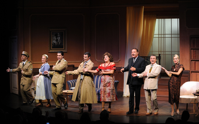 Όλος ο θίασος πάνω στη σκηνή του θεάτρου Ήβη στην επίσημη πρεμιέρα