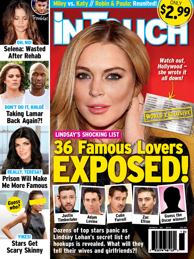 Το περιοδικό παραθέτει μάλιστα ως πηγή στενό πρόσωπο του περιβάλλοντος της Lohan, που ήταν μαζί της στο δωμάτιο του Beverly Hills Hotel στις 30 Ιανουαρίου 2013, όταν η κατεργαρούλα αποφάσισε να μνημονεύσει τα ειδύλλιά της.