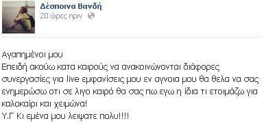 Το ίδιο ισχύει και για τον Γιάννη Πλούταρχο για τον οποίο κυκλοφόρησαν οι ίδιες φήμες. Η Δέσποινα διέψευσε και επίσημα τα δημοσιεύματα αυτά μέσα από την επίσημη σελίδα της στο facebook.