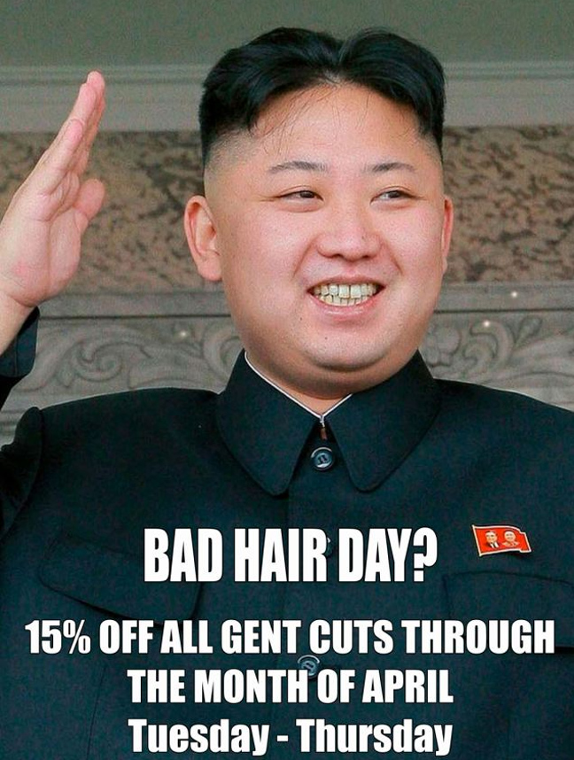 Όλα άρχισαν από έναν κομμωτή που έβαλε στη βιτρίνα του κομμωτηρίου του στο Λονδίνο αφίσα με τον ηγέτη της Βόρειας Κορέας Κιμ Γιονγκ Ουν και λεζάντα «Κακή μέρα για τα μαλλιά σας;» προκειμένου να προωθήσει ένα μήνα έκπτωσης στα ανδρικά κουρέματα.