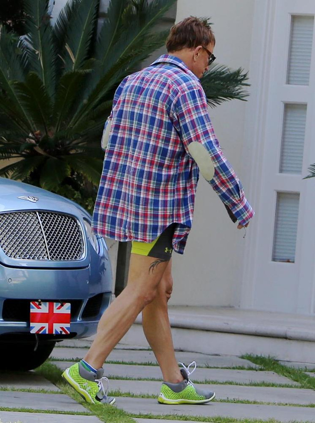 Φορώντας ένα ποδηλατικό κολάν, αθλητικά παπούτσια και καρό πουκάμισο πάνω από μια μαύρη μπλούζα, εμφανίστηκε στο Λος Άντζελες, μπροστά στα έκπληκτα μάτια περαστικών και φωτογράφων, ένας από τους διάσημους όμορφους του Χόλιγουντ, στο όχι και τόσο μακρινό παρελθόν…