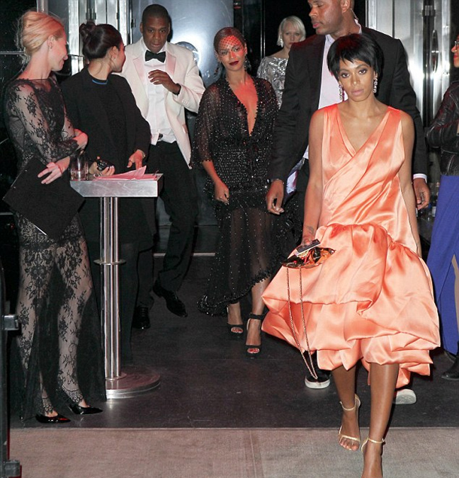 Επίθεση με κλωτσιές και μπουνιές δέχθηκε ο άνδρας της Beyonce, Jay Z, από την αδελφή της, Solange, την ώρα που έφευγαν από το γκαλά στο Metropolitan Museum of Art τη Δευτέρα.