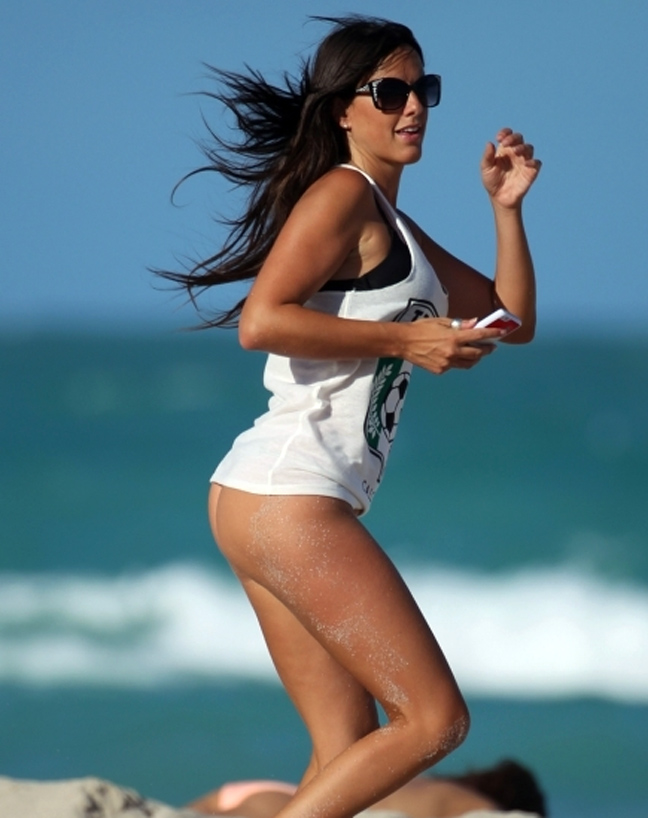 Φορώντας ένα μικροσκοπικό μπικίνι και μια μπλούζα με την σημαία της χώρας της, περήφανη για την καταγωγή της, απόλαυσε τον ήλιο και τη θάλασσα.
