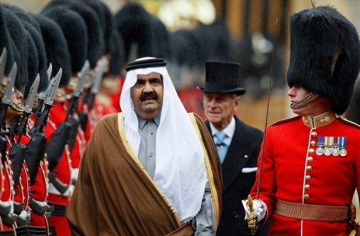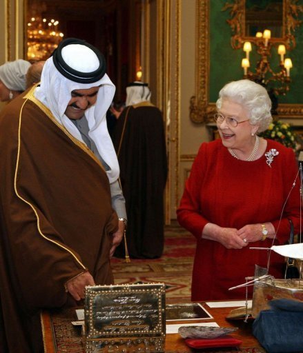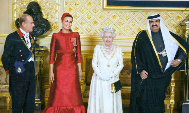 Η βασίλισσα Ελισάβετ II υποδέχτηκε με κάθε επισημότητα τον εμίρη του Κατάρ και τη μία από τις τρεις συζύγους του την περασμένη Πέμπτη. Το ταξίδι του εμίρη στη Βρετανία έγινε για τη σύσφιξη των εμπορικών σχέσεων των δύο χωρών και τη στήριξη της υποψηφιότητας του εμιράτου για τη «φιλοξενία» του Παγκοσμίου Κυπέλλου Ποδοσφαίρου του 2022.