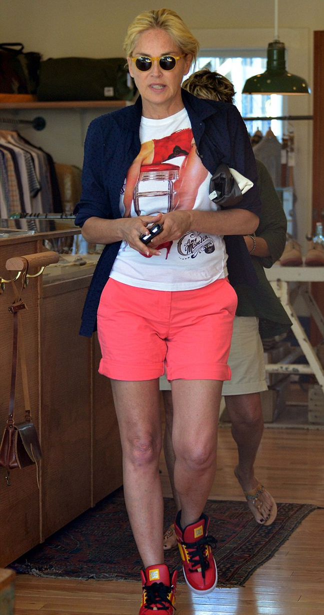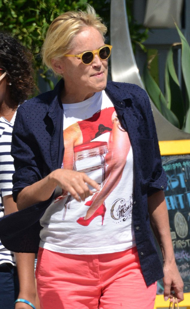 Φορώντας ένα ροζ σορτσάκι, αθλητικά παπούτσια και χωρίς ίχνος μακιγιάζ εθεάθη η αμερικανίδα ηθοποιός Sharon Stone να κάνει βόλτα στη Καλιφόρνια παρέα με μια φίλη της.
