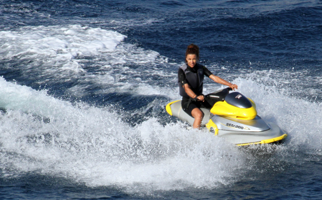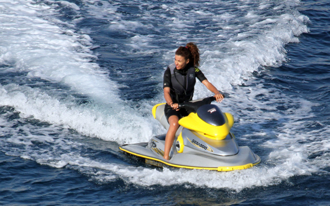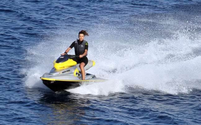 Η τραγουδίστρια μακριά απολαμβάνει τον καυτό ήλιο, τις όμορφες παραλίες αλλά και τα θαλάσσια σπορ που τόσο αγαπάει.