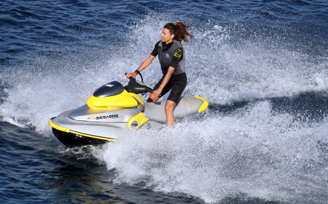 Ο φωτογραφικός φακός την απαθανάτισε να «σκίζει» τα κύματα κάνοντας τζετ σκι.