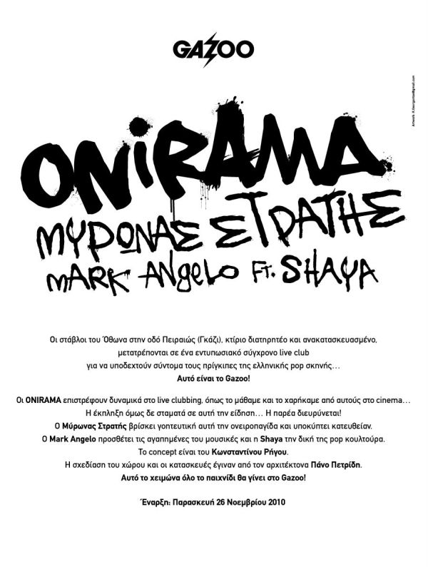 Οι στάβλοι του Όθωνα στην οδό Πειραιώς (Γκάζι), κτίριο διατηρητέο και ανακατασκευασμένο, μετατρέπονται σε ένα εντυπωσιακό σύγχρονο live club για να υποδεχτούν σύντομα τους πρίγκιπες της ελληνικής pop σκηνής…Αυτό είναι το Gazoo!
