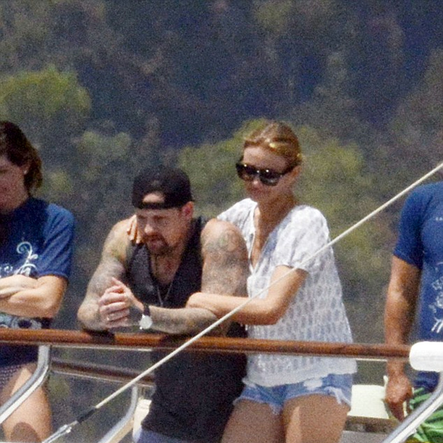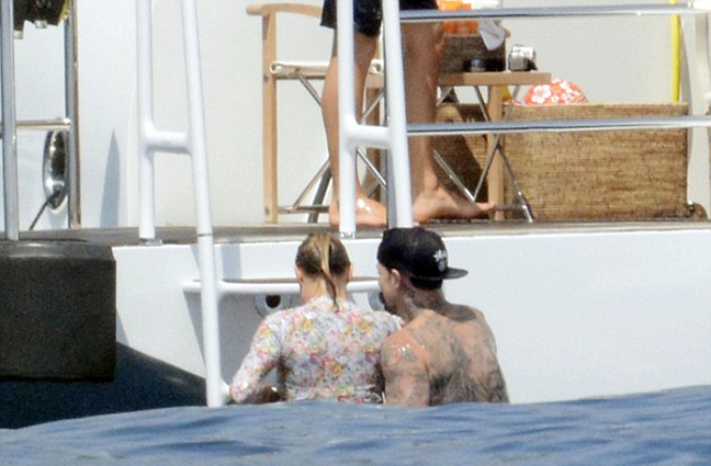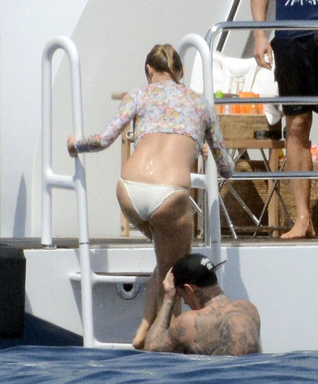 Ο φωτογραφικός φακός των παπαράτσι «συνέλαβε» τη διάσημη ηθοποιό να κάνει τις βουτιές της από τη θαλαμηγό. Αφού δροσίστηκε φόρεσε ένα μπλουζάκι κι ένα «καυτό» τζιν σορτς και άρχισε τις αγκαλιές στον κατά έξι χρόνια νεότερο σύντροφό της πάνω στο κατάστρωμα του σκάφους.