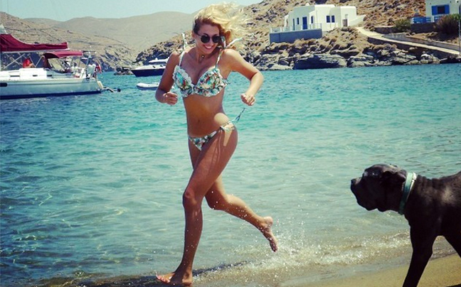 Με το μπικίνι της και τον αγαπημένο της Μπρούνο, η γνωστή παρουσιάστρια δείχνει ότι δε χρειάζεται τίποτε άλλο. Μόνο να βρίσκεται στην παραλία, να απολαμβάνει τον ήλιο και τη θάλασσα και να παίζει με τον σκύλο της, στον οποίο έχει μεγάλη αδυναμία. Οι δυο τους παίζουν με το νερό στην παραλία προτού η Κωνσταντίνα κάνει τη βουτιά της στη θάλασσα, όπως φαίνεται στη φωτογραφία που ανέβασε στα social media.