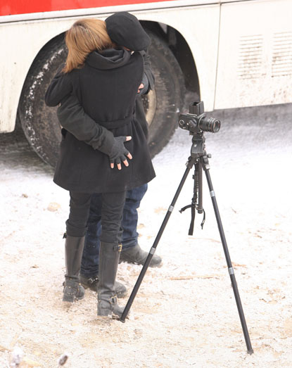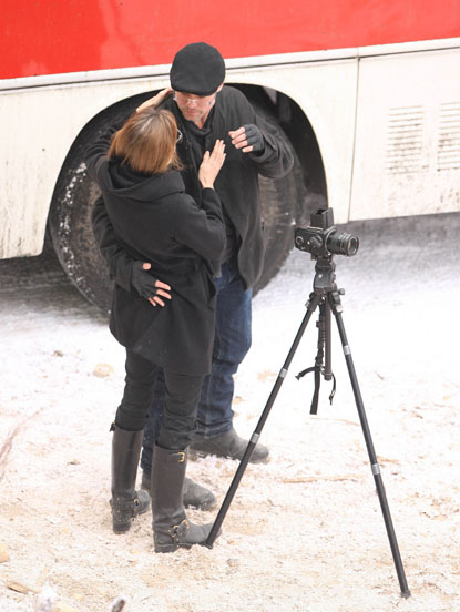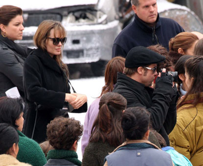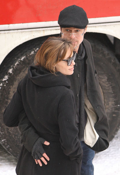 Ο Brad Pitt αγκαλιάζει και φιλάει τρυφερά τη σύντροφό του Angelina Jolie, με φόντο το χιονισμένο… σκηνικό, όπου η διάσημη ηθοποιός πραγματοποιεί τα γυρίσματα της ταινίας της στην Ουγγαρία!