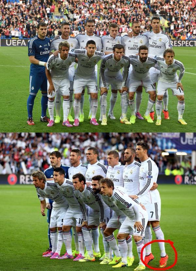 «Ο Κριστιάνο Ρονάλντο προσπαθεί να δείχνει πιο ψηλός από όλους στην ομαδική φωτογραφία της Ρεάλ Μαδρίτης. Παραδέξου το, όλοι το κάνουμε…», γράφει το σχόλιο.