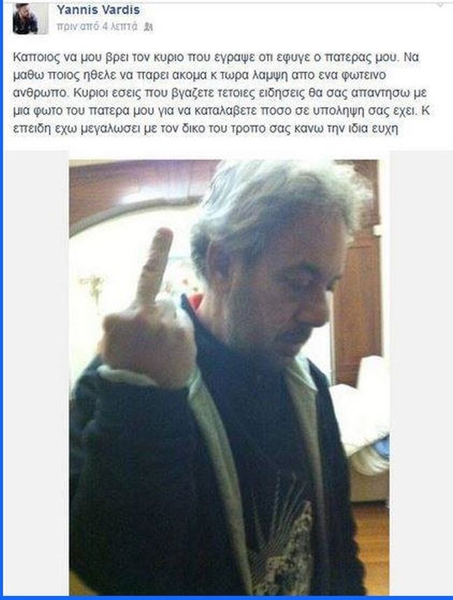 Από την πλευρά του ο Αντώνης Βαρδής έδωσε τη δική του απάντηση μέσω του προφίλ του Facebook του γιου του…