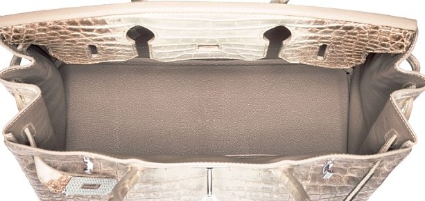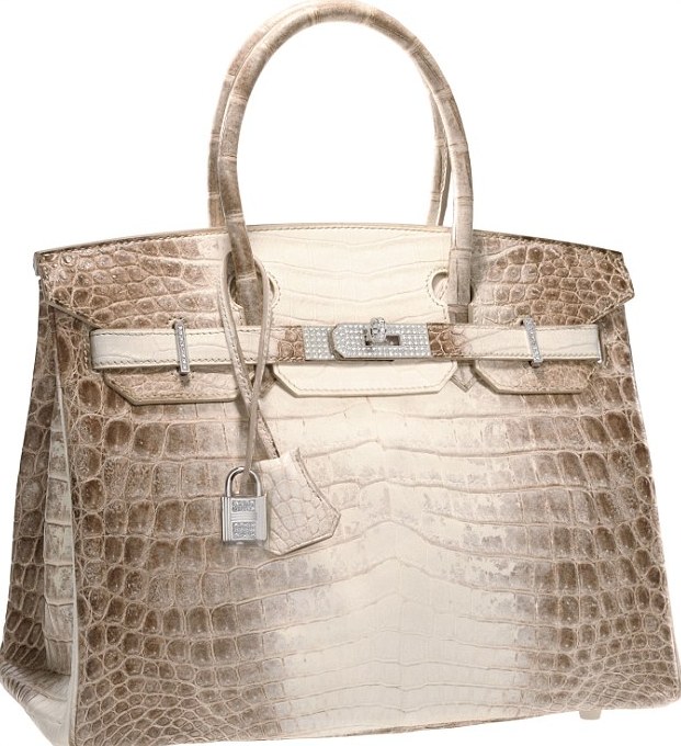 Το υπερπολυτελές γυναίκειο αξεσουάρ είναι κατασκευασμένο από δέρμα κροκόδειλου (Matte Himalayan Nilo Crocodile Birkin Bag) και διακοσμημένο με πόρπες από λευκόχρυσο και διαμάντια.