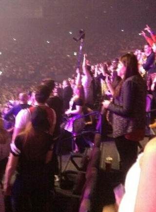 «Δεν μπορώ να πω αυτό το τραγούδι, δε μπορώ να συνεχίσω τη συναυλία αν δεν σηκωθούν όλοι όρθιοι», ήταν τα λόγια του. Εξήγησε ότι μπορούν να εξαιρεθούν όσοι είναι ανάπηροι. Βλέποντας τα δύο άτομα να παραμένουν καθιστά άρχισε να εκνευρίζεται και δεν το έκρυψε, αλλά τα… είπε μέσω μικροφώνου. Κάποια στιγμή είδε τη μία από τους δύο να κουνάει στον αέρα ένα προσθετικό πόδι! Η απάντηση του; «Εσύ είσαι εντάξει», κοινώς δικαιολογείται που δε σηκώνεται. Βλέποντας όμως τον έτερο που δε σηκώθηκε να επιμένει να παραμένει καθιστός έστειλε τον σωματοφύλακα του Πασκάλ Ντουβιέ να διαπιστώσει αν όντως είναι ανάπηρος. Ενδιάμεσα βέβαια, διαμαρτυρόταν λέγοντας ότι «δεν έχω περιμένει περισσότερο…».