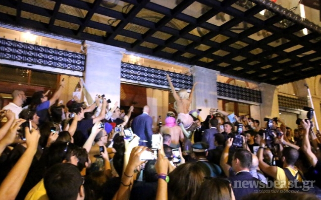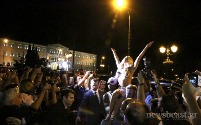 Στη συνέχεια, έξω από κεντρικό ξενοδοχείο της πρωτεύουσας με το που εμφανίστηκε η διάσημη τραγουδίστρια, δύο από τους άντρες ασφαλείας της, την σήκωσαν στα χέρια με τον κόσμο να της δείχνει το θαυμασμό του.