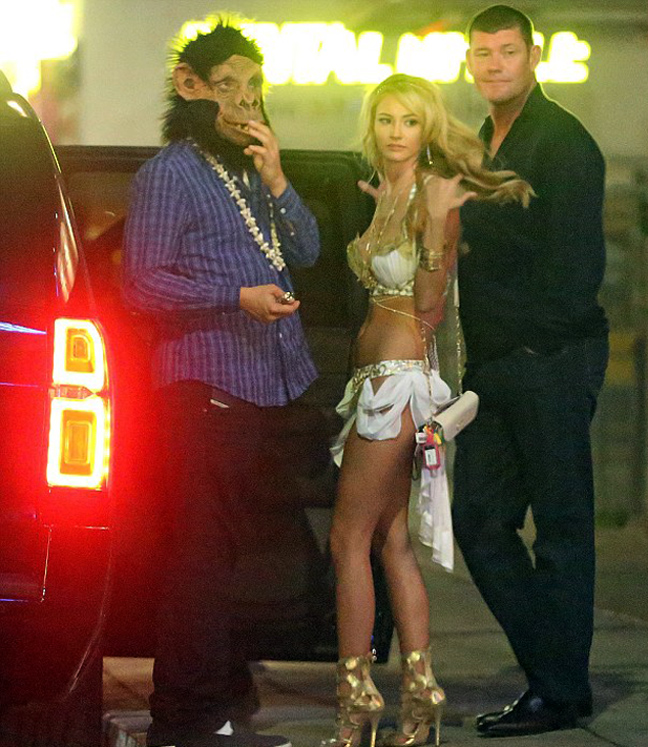 Κατά την έξοδό του από το εστιατόριο Nobu στο Μαλιμπού, ο Χολιγουντιανός αστέρας εθεάθη να φορά μάσκα γορίλα και να επιβιβάζει στο πολυτελές τζιπ του τρεις καλλονές.