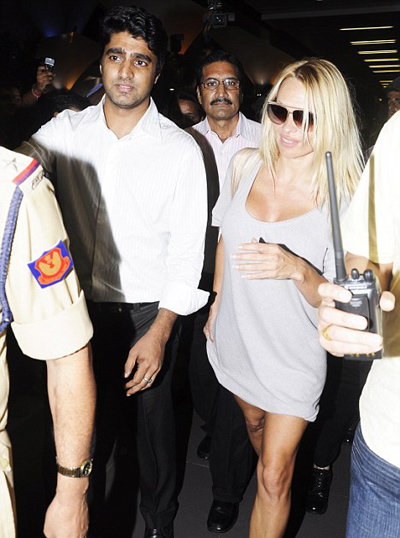 Η Pamela έφτασε στην Ινδία γιατί θα λάβει μέρος στο «τοπικό» Big Brother, το οπόιο ονομάζεται «Big Boss». Θα παραμείνει στο «σπίτι» για 3 μέρες με άλλους celebrities της χώρας, όπως ο σούπερσταρ Khali.