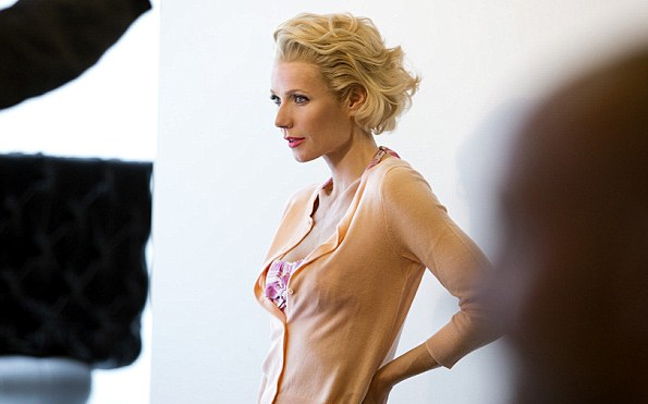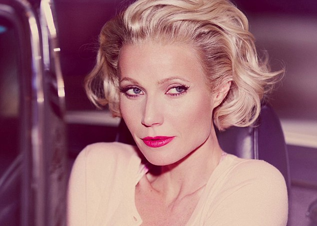 Με κατακόκκινα χείλη, μακριές βλεφαρίδες και κοντά «σπαστά» μαλλιά, η Gwyneth είναι σχεδόν… αγνώριστη.