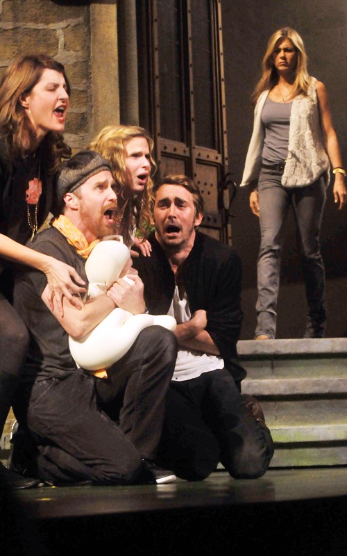 Δείτε στιγμιότυπα από την εμφάνιση της Άνιστον στην παράσταση «The bitch downstairs»: