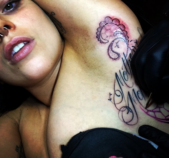 Η τραγουδίστρια, που όπως πάει θα «ξεμείνει» από ελεύθερα μέρη για τατουάζ με τόσα που έχει, αποφάσισε να μοιραστεί την εμπειρία της διαδικασίας με τον κόσμο και ανέβασε βίντεο όπου τη δείχνει live, αλλά και φωτογραφίες. Το 17ο απόκτημά της βρήκε τον χώρο του ακριβώς κάτω από την αριστερή της μασχάλη και είναι πολύ μεγάλο, αφιερωμένο στα τερατάκια της, όπως αποκαλεί χαρακτηριστικά τους απανταχού θαυμαστές της.