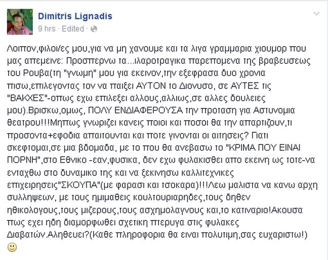 Αναλυτικά ολόκληρη η ανάρτηση Λιγνάδη: