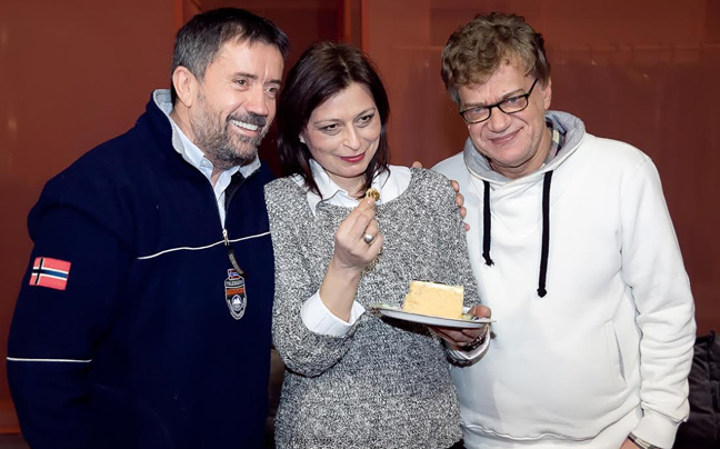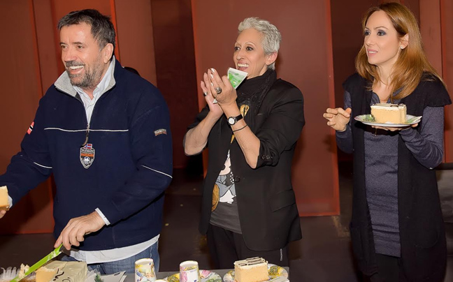 O Σπύρος Παπαδόπουλος, o Τάκης Παπαματθαίου, η Βάνα Ραμπότα, η Νικολέτα Κοτσαηλίδου, ο Στέλιος Πέτσος, οι τεχνικοί και το προσωπικό του θεάτρου ΚΑΠΠΑ, είχαν την ευκαιρία να χαλαρώσουν και να ανταλλάξουν ευχές για την καινούργια χρονιά αλλά και να συγχαρούν την τυχερή της πίτας, την Πόπη Δημακοπούλου, χρόνια ταξιθέτρια στις παραστάσεις του Σπύρου Παπαδόπουλου, που κέρδισε το φλουρί.