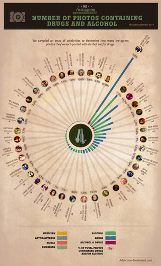 Η ιστοσελίδα Addiction-treatment.com, που προσφέρει βοήθεια σε όσους αναζητούν διέξοδο σε προβλήματα ουσιών, προχώρησε σε μια έρευνα για το αν οι διάσημοι προωθούν το αλκοόλ και τα ναρκωτικά μέσα από τα social media.