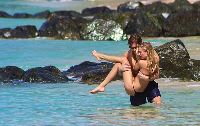 Η 24χρονη ξανθιά, η οποία έγινε γνωστή στη Βρετανία από τη συμμετοχή της στο δημοφιλές τηλεοπτικό ριάλιτι «Made in Chelsea» δεν ήταν μόνη. Συνοδευόταν από τον καλό της με τον οποίο και δεν έλειψαν τα παιχνίδια μέσα κι έξω από το νερό.