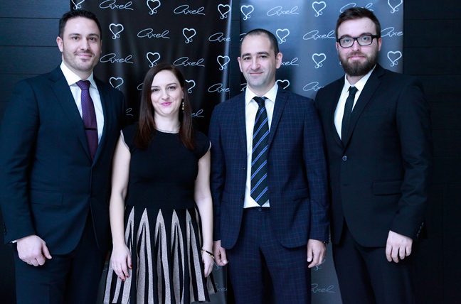 Ο κος Κώστας Παπαδόπουλος με την κυρία Κατερίνα Στυαλιανίδου, τον CEO της Axel κο. Κωνσταντίνο Λαγουμάκη και τον κο. Γιώργο Γάτο.
