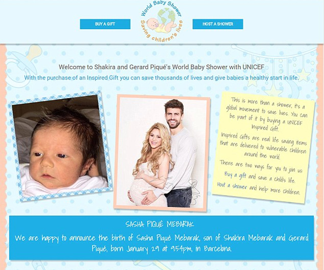 Η κολομβιανή τραγουδίστρια σύστησε τον δεύτερο γιο της σε όλο τον κόσμο, μέσω του site της Unicef, «World Baby Shower».