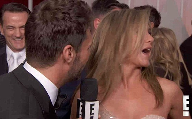 Η 46χρονη ηθοποιός του «Cake», μιλούσε στον δημοσιογράφο Ράιαν Σίκρεστ για λογαριασμό του E!News, όταν η συνάδελφός της, πέρασε από πίσω της και της δίνει μια μεγαλοπρεπέστατη τσιμπιά!
