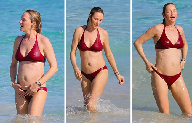 Η 44χρονη ηθοποιός εθεάθη να κάνει τις διακοπές της στο Saint Barts παρέα με τα τρία παιδιά της. Χωρίς ίχνος μεικάπ, η Uma Thurman έδειχνε υπέροχη με το κόκκινο μαγιό της καθώς δροσιζόταν στα κρυστάλλινα νερά ή έπαιζε στην άμμο.