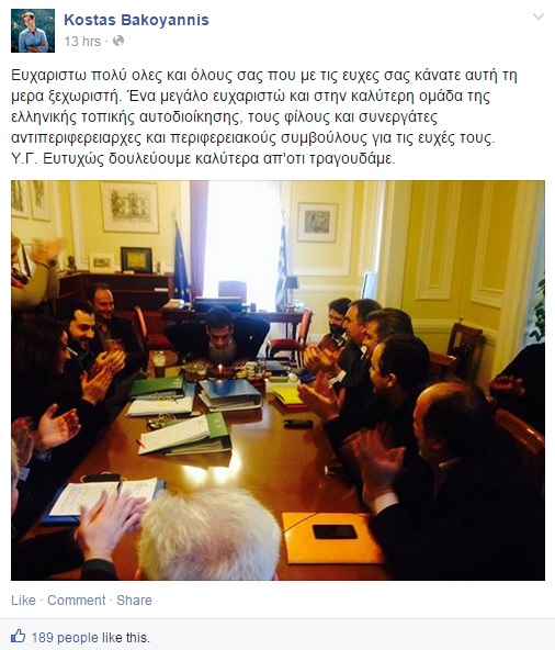 Ο κ. Μπακογιάννης ανέβασε τη φωτογραφία στο Facebook και έγραψε: