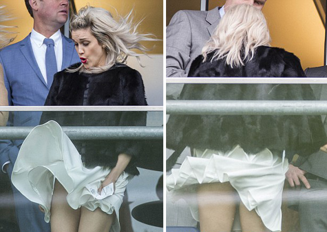 Η 33χρονη παρακολουθούσε τους επίσημους αγώνες ιπποδρομιών και μάλιστα δίπλα στον Δούκα και τη δούκισσα της Κορνουάλης, όταν φύσηξε ένας δυνατός άνεμος ο οποίος και σήκωσε την φούστα της με αποτέλεσμα να φανεί το μαύρο εσώρουχό της.