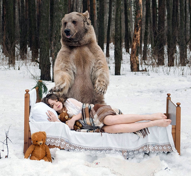 «Θέλαμε να δείξουμε τη φυσική αρμονία μεταξύ των ανθρώπων και των αρκούδων», δήλωσε η φωτογράφος Olga Barantseva, η οποία κατέγραψε αυτές τις ιδιαίτερες εικόνες, σε μια περιοχή λίγο έξω από τη Μόσχα.
